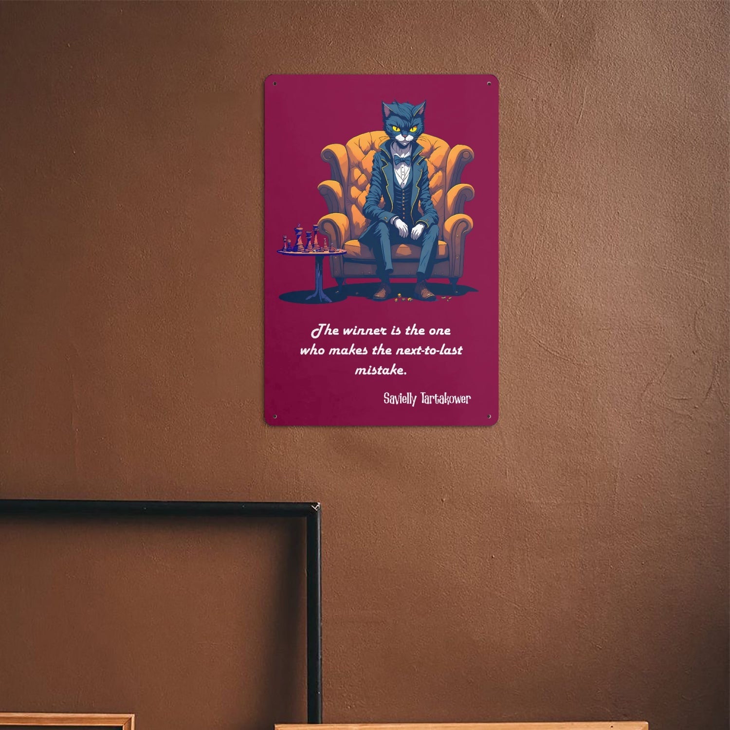The winner is who makes the next-to-last mistake | Metal Print | Chess Cat Art Series
